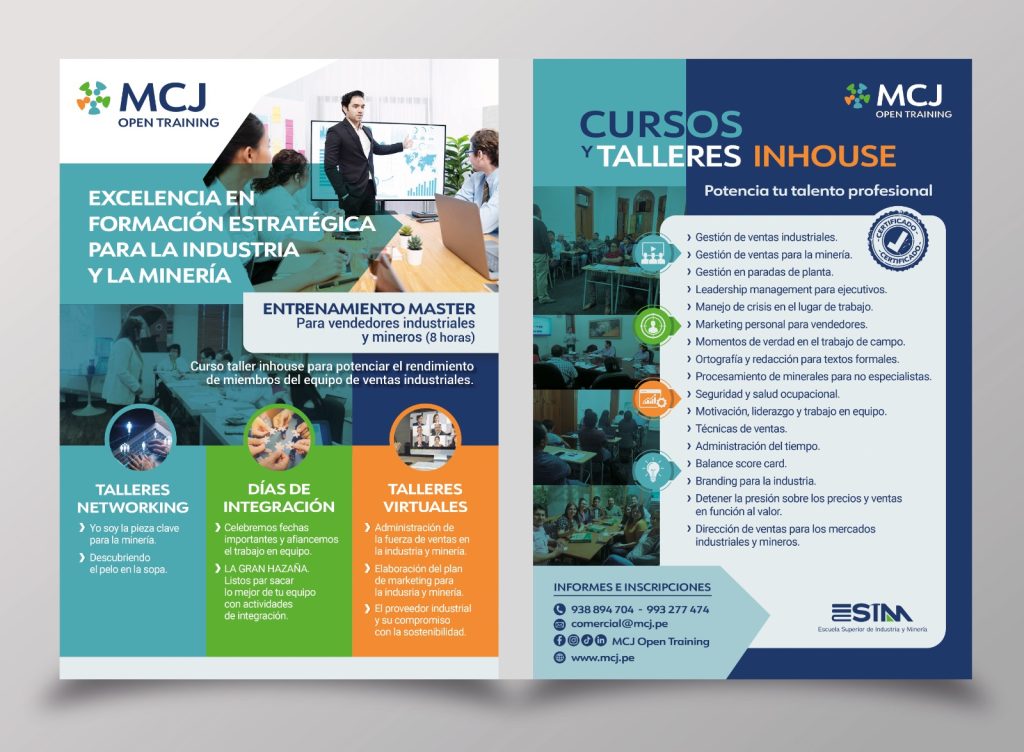 MCJ OPEN TRAINING, es una empresa al servicio de la industria y minería desde hace casi 13 años. Nos dedicamos a potenciar a los profesionales para que rindan en su máximo potencial, gracias a nuestras capacitaciones y consultorías orientadas principalmente a las áreas de ventas, logística y producción.